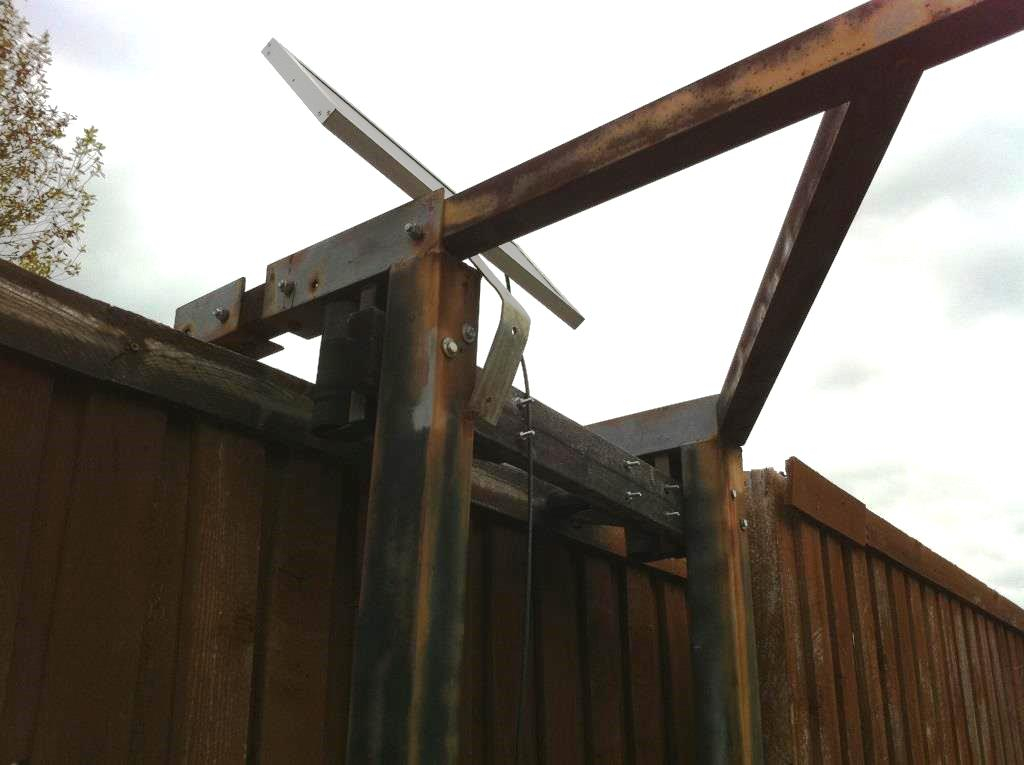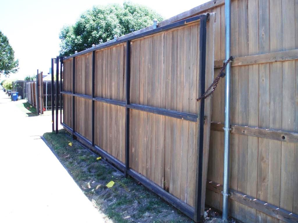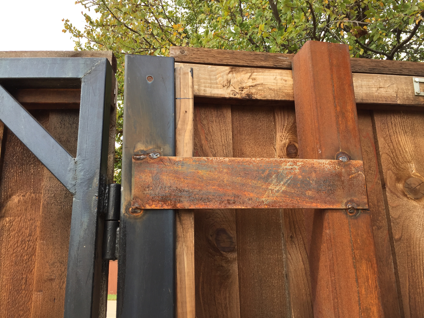 Hancock Fence also likes nice, clean installs. If you will notice in the photos above, (click on image to enlarge) there are no weld tabs, no bolts, nuts or nails sticking out or showing. No fasteners of any kind exposed. We use double fasteners at every intersection of the wood & steel. All of of our frame fasteners are hidden and cannot be seen from either side of the gate.