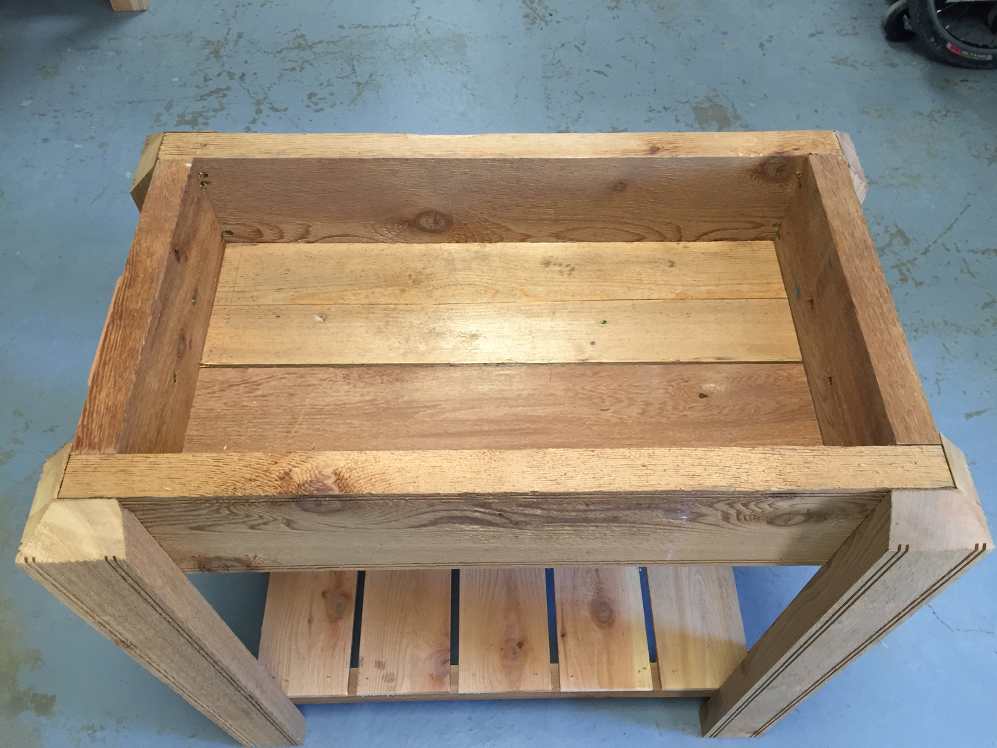 The inside of the planting box is 35-3/4″ long, 15.5″ front to back, and will hold 6″ deep. The box self drains and the height makes it easy on your back while planting and arranging your creation.