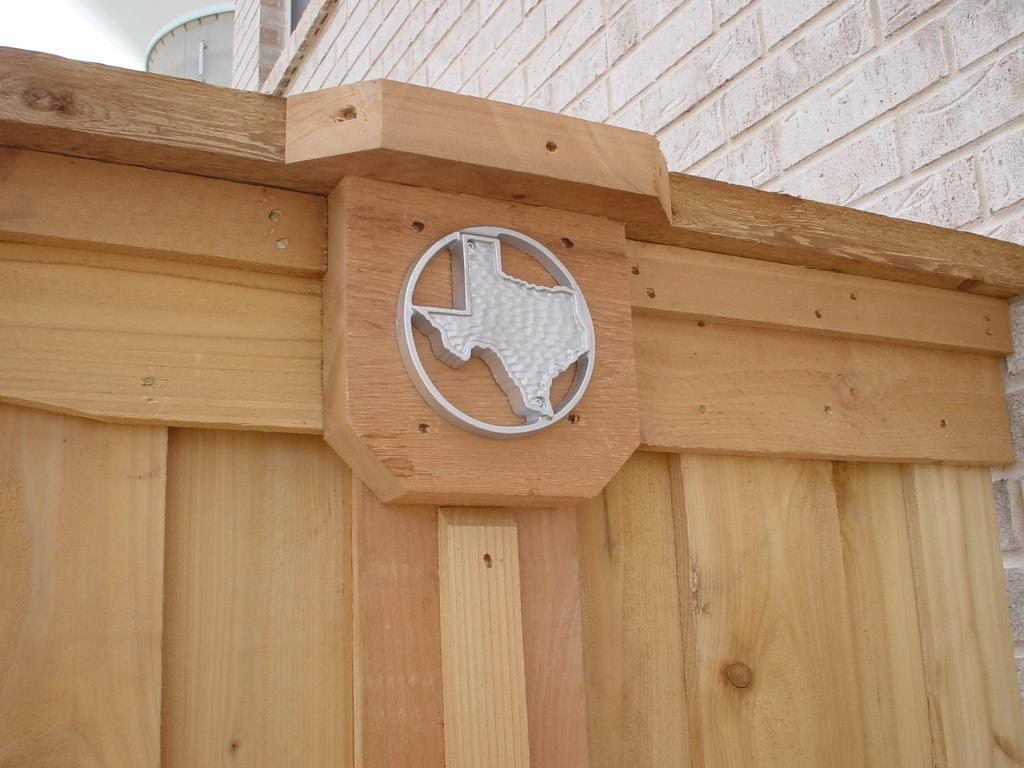 At our McKinney TX. facility, you will find a full selection of our custom, hand made Aluminum Fence Art, Cedar Corbels, Plaques and Stars. We are working up a new line of these products that are DIY friendly making them super easy to install yourself if you don’t own a Hancock Fence.